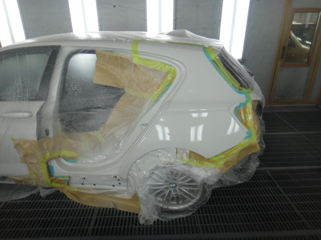 左リアドア、左クォーターパネル、左ロッカーパネルカバーを下処理を施した後塗装していきます。